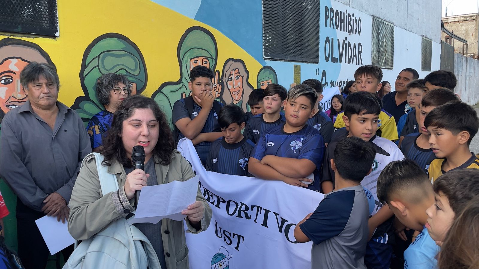 El acto, conducido por Soledad Rodríguez, trabajadora de la UST, tuvo entre sus momentos el testimonio de Juan José Gutiérrez, ex combatiente, y luego la educadora del Bachillerato Popular Arbolito de la UST, María Belén Cacucci.